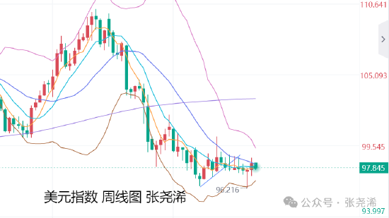 周图,金价自去年开涨攀升以来,如期第4次回踩中轨线支撑,并再度向上攀升,且不断触及给出的看涨目标位,目前依托布林带上轨支撑连续走强,当下虽冲出布林带之外,并也如期触及给出的看涨目标位附近,有阻力回撤风险,但根据前几周表现和指标信号来看,回撤力度也有限,整体走强趋势未有减弱迹象,操作将继续保持看涨上行不变。
